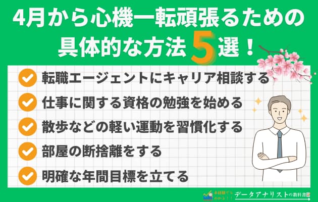 ここでは、春から心機一転頑張りたい人に向けて実践的な5つの方法をご紹介します。