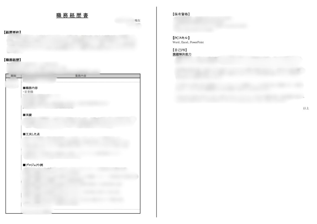 dodaエージェントのテンプレをもとに、実際に僕が作った職務経歴書(例)をベースに解説していきます!