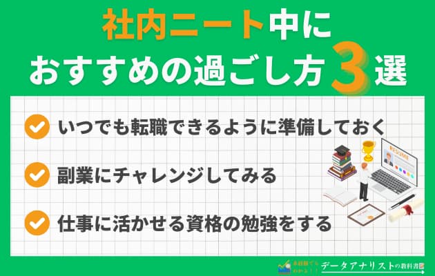 ここでは、社内ニート中に今すぐできるおすすめの過ごし方を3つご紹介します。