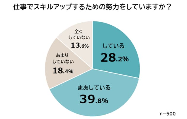 ビズヒッツ社が行った調査▼によると、スキルアップに積極的に取り組む人の割合は7割近く(68%)に達しています。
