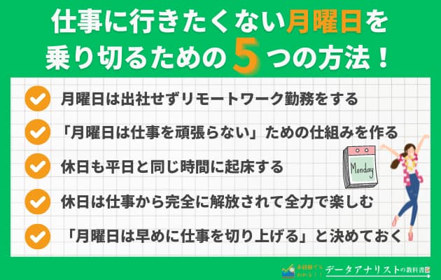 ここでは月曜日の仕事を乗り切るための対策として、以下の5つに絞ってご紹介します。