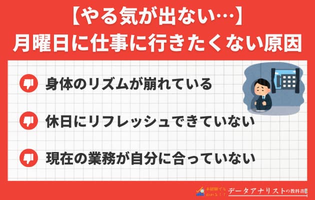 【やる気でない】月曜日に仕事に行きたくない主な原因