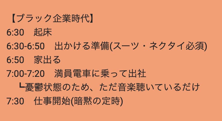 僕も1社目で働いていた時の月曜朝は最悪でした…。7:30が暗黙の勤務開始時間になっていたので、前日の夜から本当に気が重かったです。。
