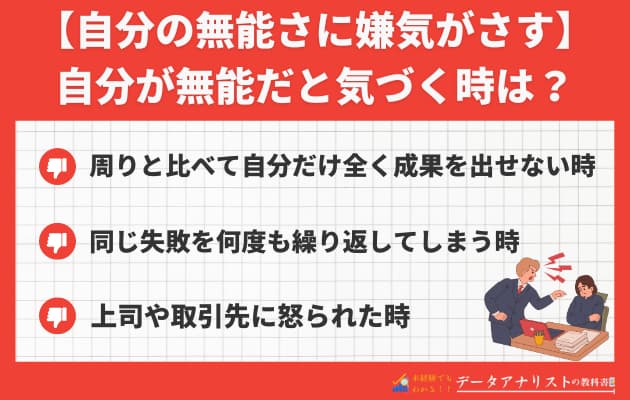 【自分の無能さに嫌気がさす】自分が無能だと気づくのはどんな時なのか?