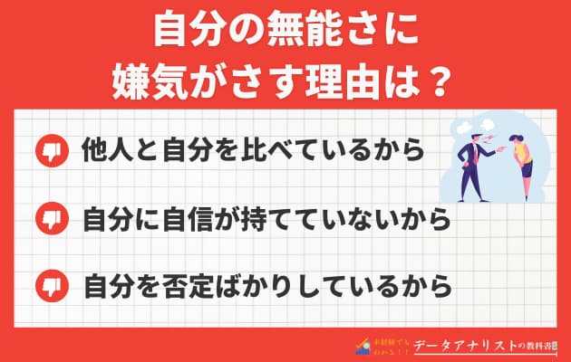 ここでは、自分の無能さに嫌気がさす代表的な理由を3つご紹介します。