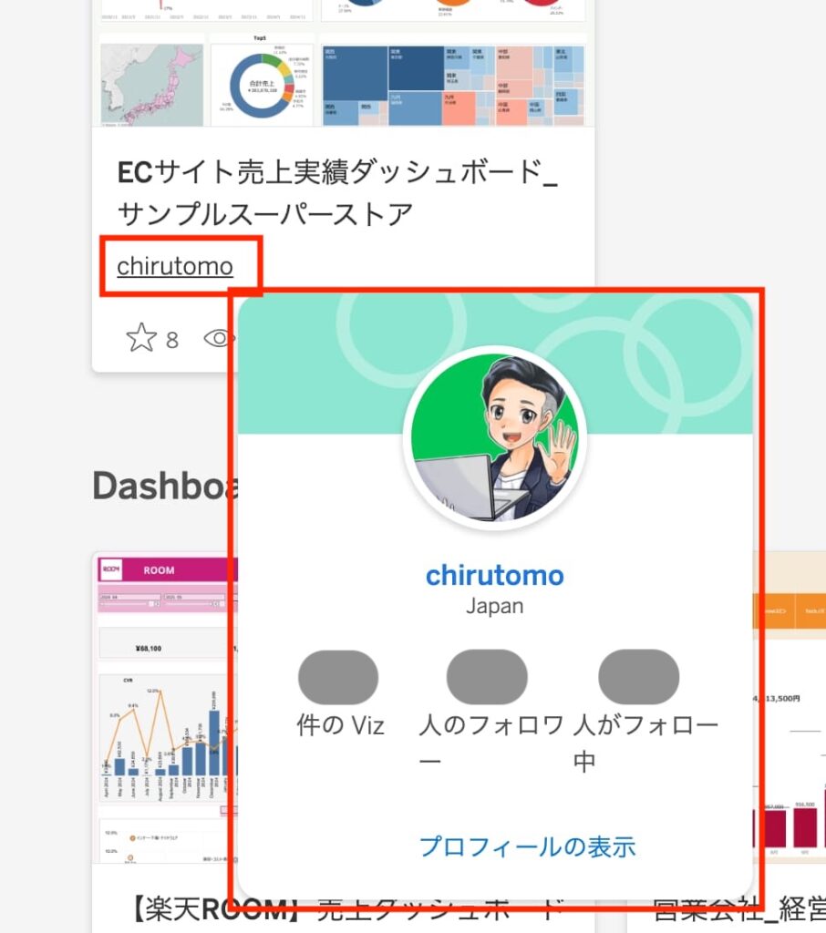┗作成者の名前をマウスオーバーすると、プロフィールのプレビューカードが表示されます。