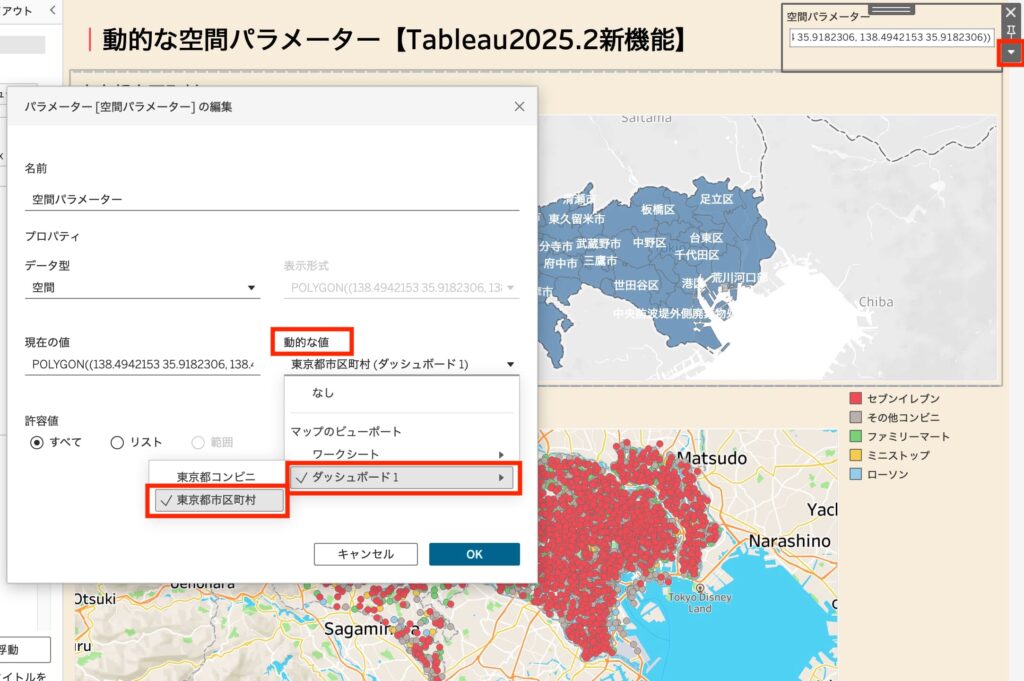 空間パラメーター(=パラメーターのデータ型で「空間」を選択)については、2つ前のバージョンであるTableau 2024.3から利用可能になっていました。