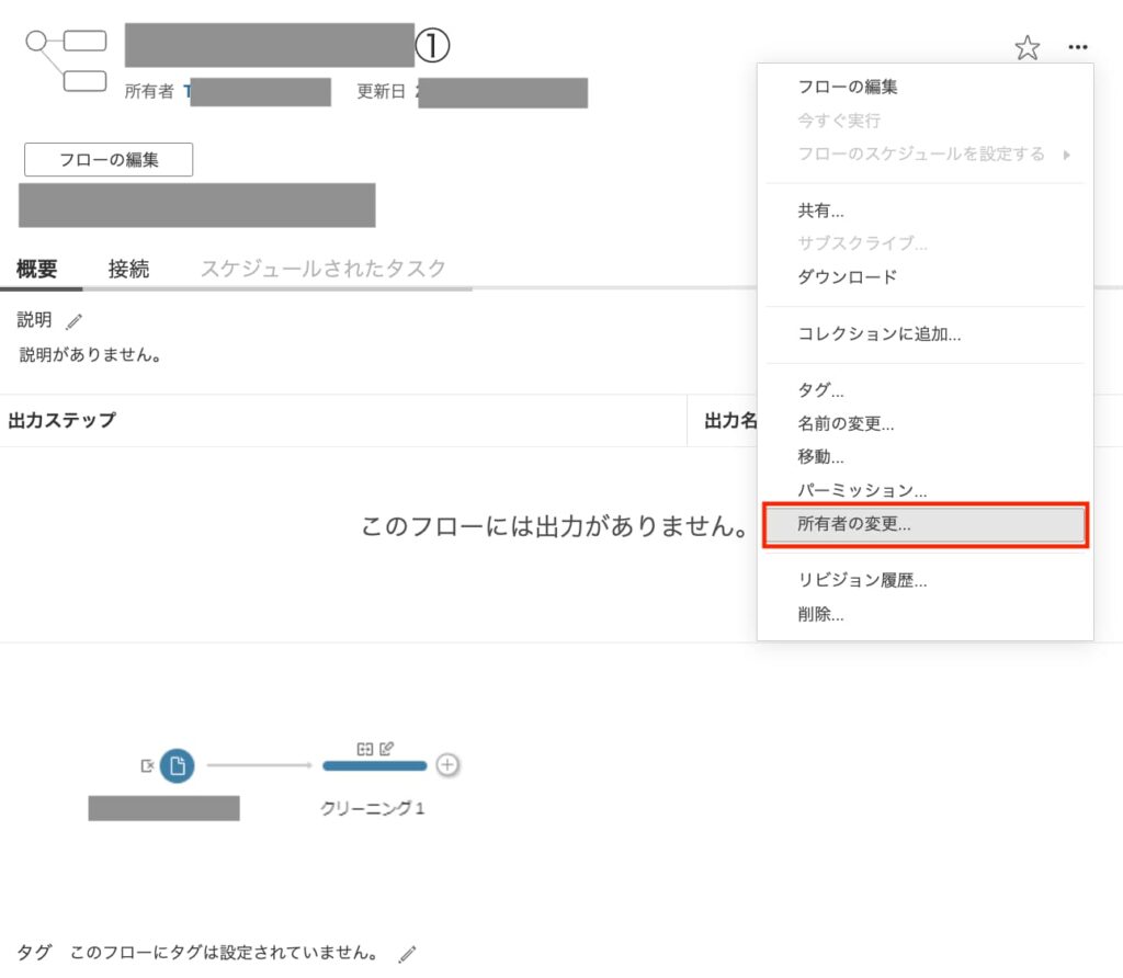 Tableau CloudやTableau Server上でPrepフローの所有権変更の機能を使うと、わずか数クリックで他のユーザーに所有権を譲渡できるようになりました。