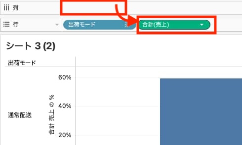 手順3:[合計(売上)]を行シェルフに移動する