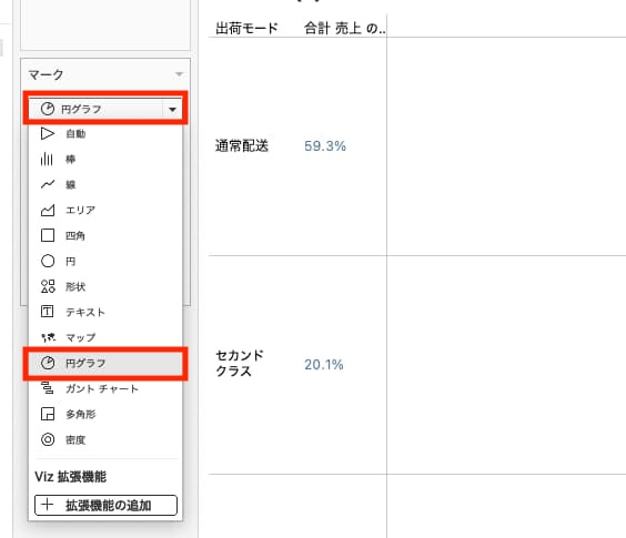 それでは実際に、Tableauの円グラフで全体に占める割合を個別に表示する方法を、順を追って解説していきます。