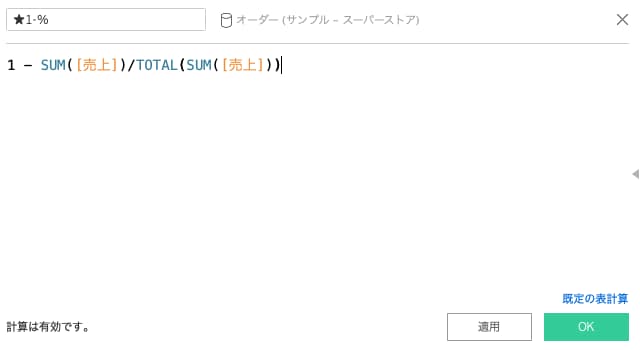1 – SUM([売上])/TOTAL(SUM([売上]))