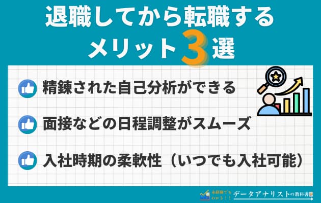 メリットを上手く活かせれば、働きながら転職活動をする人よりも有利に進められますよ!