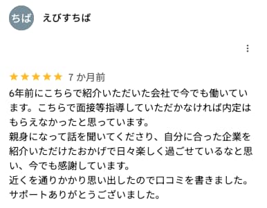 入社してから感じた不安や悩みなどを気軽に相談できる体制が整っているため、はじめて転職する人にとっても非常に安心できるでしょう。