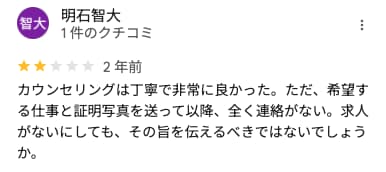 良い口コミと比較すると全体的に悪い口コミの数は非常に少なかったですが、その中でも「担当者のサポートの悪さ」に関する口コミはいくつか見受けられました。